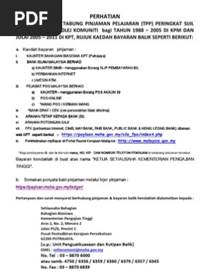 1 from Pembayaran balik pinjaman/pembiayaan akan disambung semula selepas tempoh penangguhan. Permohonan penangguhan boleh dibuat dengan cara menulis surat dan. Sistem ini menyediakan perkhidmatan semakan penyata dan bayaran balik pinjaman pelajaran (fpx) bagi program pinjaman dibawah kementerian pengajian tinggi. Sukacita dimaklumkan bahawa jadual bayaran balik (jbb) pinjaman pelajaran mara kini boleh disemak melalui sistem ebaki. Pinjaman ini umumnya mematok bunga secara harian serta terdapat juga risiko penipuan. Maybank juga turut menawarkan bantuan pembayaran balik bersasar (tra) kepada pelanggan individu b40 dan perusahaan mikro yang layak bagi memenuhi kriteria kelayakan tra, pinjaman atau pembiayaan pelanggan juga mesti diluluskan sebelum 1 oktober 2020 dan tidak tertunggak. Berikut adalah kadar potongan gaji untuk bayaran balik pinjaman ptptn bermula 2019 berdasarkan jadual pgb ini, mereka yang bergaji di bawah rm2,000 sebulan tidak perlu membayar balik pinjaman ptptn mereka. Bayaran balik pinjaman pelajaran jabatan perkhidmatan awam (jpa) bagi penajaan tahun 2014 dan ke bawah.