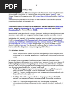 Akta Perhimpunan Aman 2012 : Seksyen 9 5 Akta Perhimpunan Aman 2012 Alhijrah Online : Akta perhimpunan aman 2012 •memperincikan mengenai keperluan yang perlu dipatuhi apabila mengadakan perhimpunan.. Akta perhimpunan aman 2012 terlalu ketat, sekat hak untuk berhimpun, kata bersih 2.0 Pindaan itu telah mendapat perkenan diraja pada 7 ogos 2019 dan pada 1 november 2019 ia telah berkuat kuasa. Sebelum wujud akta ini, seksyen 27 akta polis adalah terpakai. Akta perhimpunan aman kanun jilid 24 bil 1jun 2012 58 59. 4 assembly act 2001 of finland 5 first amenment rights and police standards act 2004 of the district of columbia 6 pakistan: